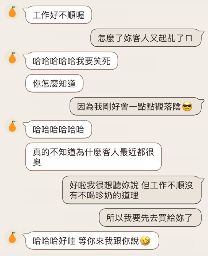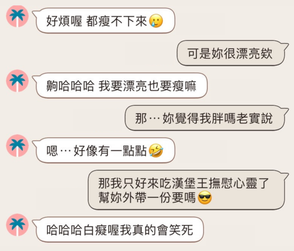 (以下對話不限面對面聊天或訊息聊天形式,為清楚示範用 line 對話作範例。)