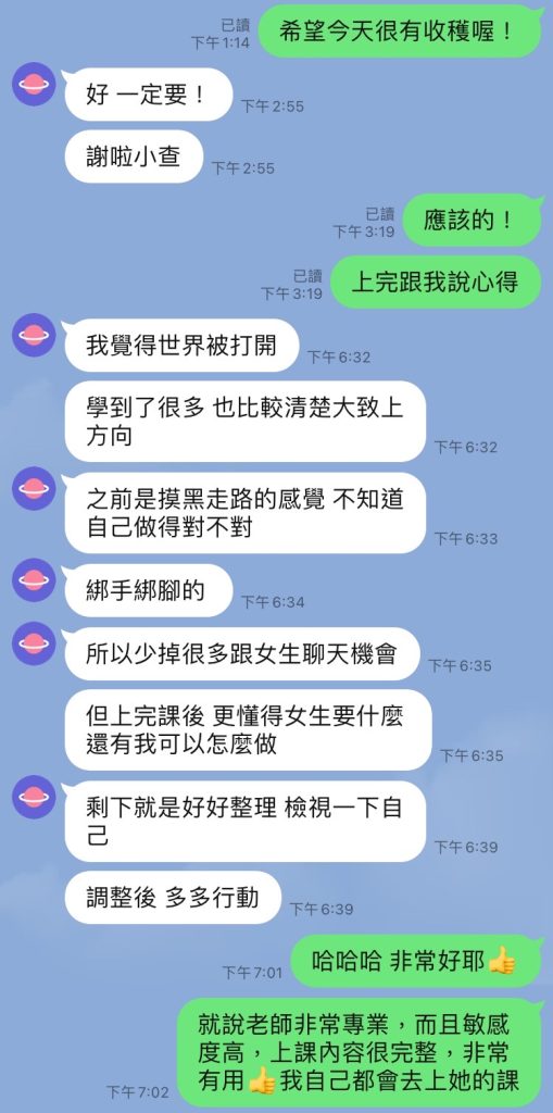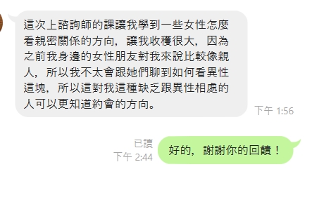 好評推薦-兩性關係課程心得回饋