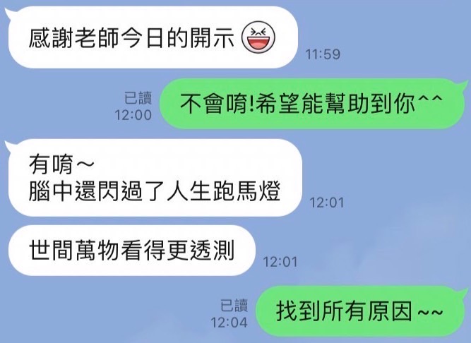 一對一的課程能夠更了解自己的問題,找出過往不順利的原因,改變思考模式,找到戀愛的新方法!